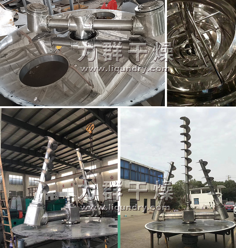 1. 螺旋沿壁公轉,使物料沿錐壁作圓周運動;